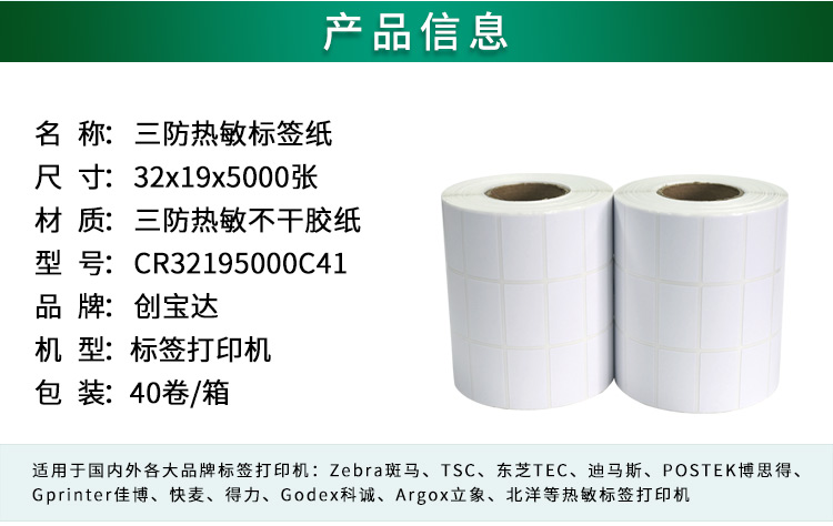 【規(guī)格】卷裝32mm*19mm*5000張三排(足數(shù):5000張)一箱裝40卷