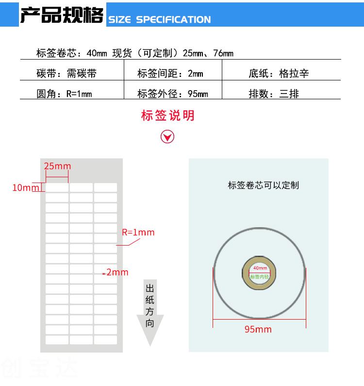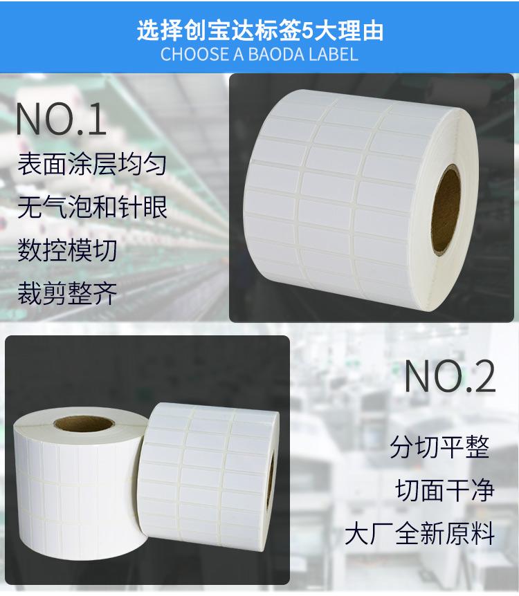 適合不同氣候地區(qū)使用,適用電子電器、五金塑膠、服裝、醫(yī)藥、日化、食品、商超、倉儲物流、資產(chǎn)管理、條碼標識、外箱貼紙等長期保存的產(chǎn)品標簽及外箱標簽同時也可以用于長時間保存(配合碳帶)的亞馬遜、郵政國際、物流標簽、郵政包裹、EBAY、速賣通、遞四方、出口EUB標簽、出口電商等標簽