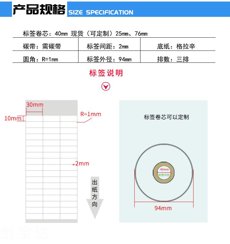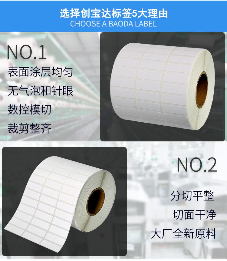 適合不同氣候地區(qū)使用,適用電子電器、五金塑膠、服裝、醫(yī)藥、日化、食品、商超、倉儲物流、資產(chǎn)管理、條碼標識、外箱貼紙等長期保存的產(chǎn)品標簽及外箱標簽同時也可以用于長時間保存(配合碳帶)的亞馬遜、郵政國際、物流標簽、郵政包裹、EBAY、速賣通、遞四方、出口EUB標簽、出口電商等標簽