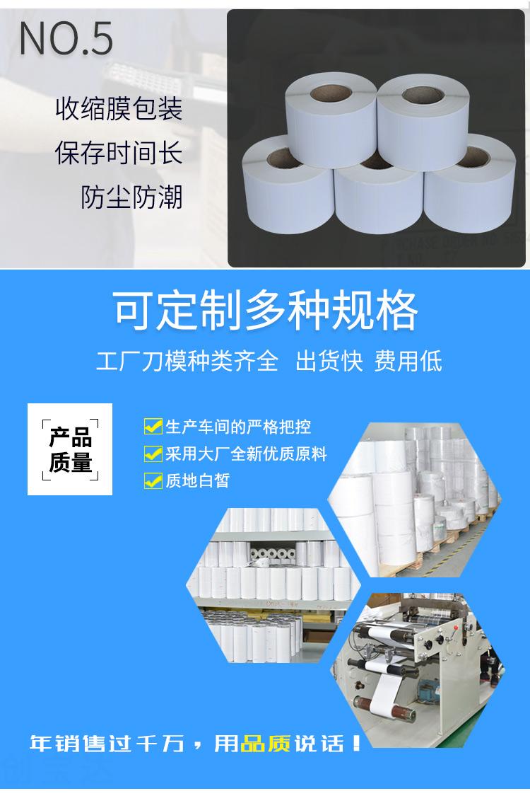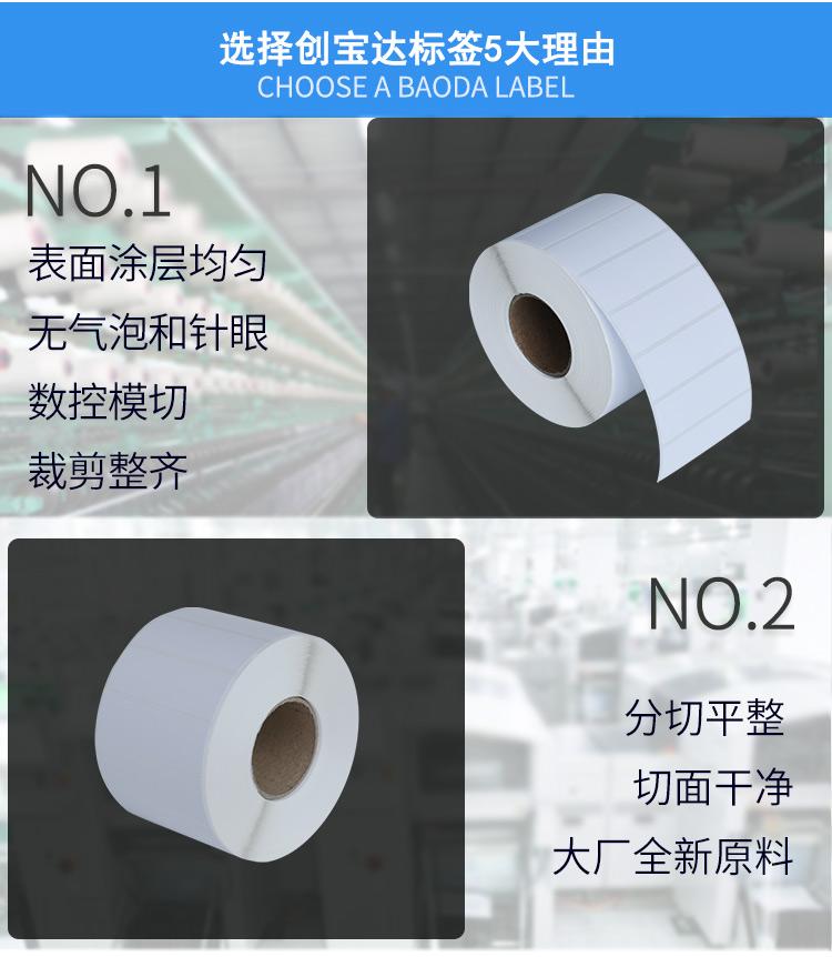 適合不同氣候地區(qū)使用,適用電子電器、五金塑膠、服裝、醫(yī)藥、日化、食品、商超、倉儲(chǔ)物流、資產(chǎn)管理、條碼標(biāo)識(shí)、外箱貼紙等長(zhǎng)期保存的產(chǎn)品標(biāo)簽及外箱標(biāo)簽同時(shí)也可以用于長(zhǎng)時(shí)間保存(配合碳帶)的亞馬遜、郵政國(guó)際、物流標(biāo)簽、郵政包裹、EBAY、速賣通、遞四方、出口EUB標(biāo)簽、出口電商等標(biāo)簽