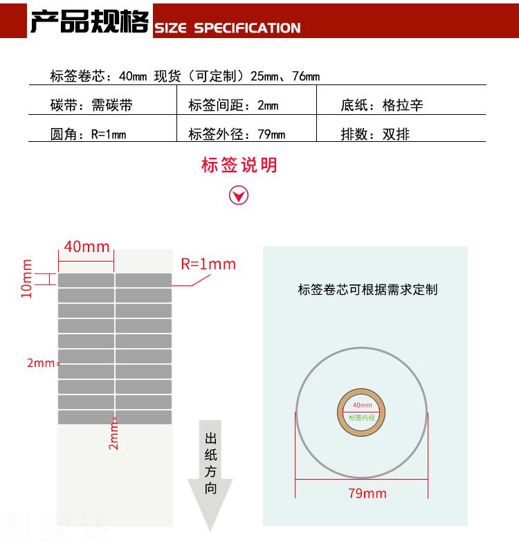【標(biāo)簽間距】2mm、圓角R=1.5MM、卷芯內(nèi)徑:40mm
